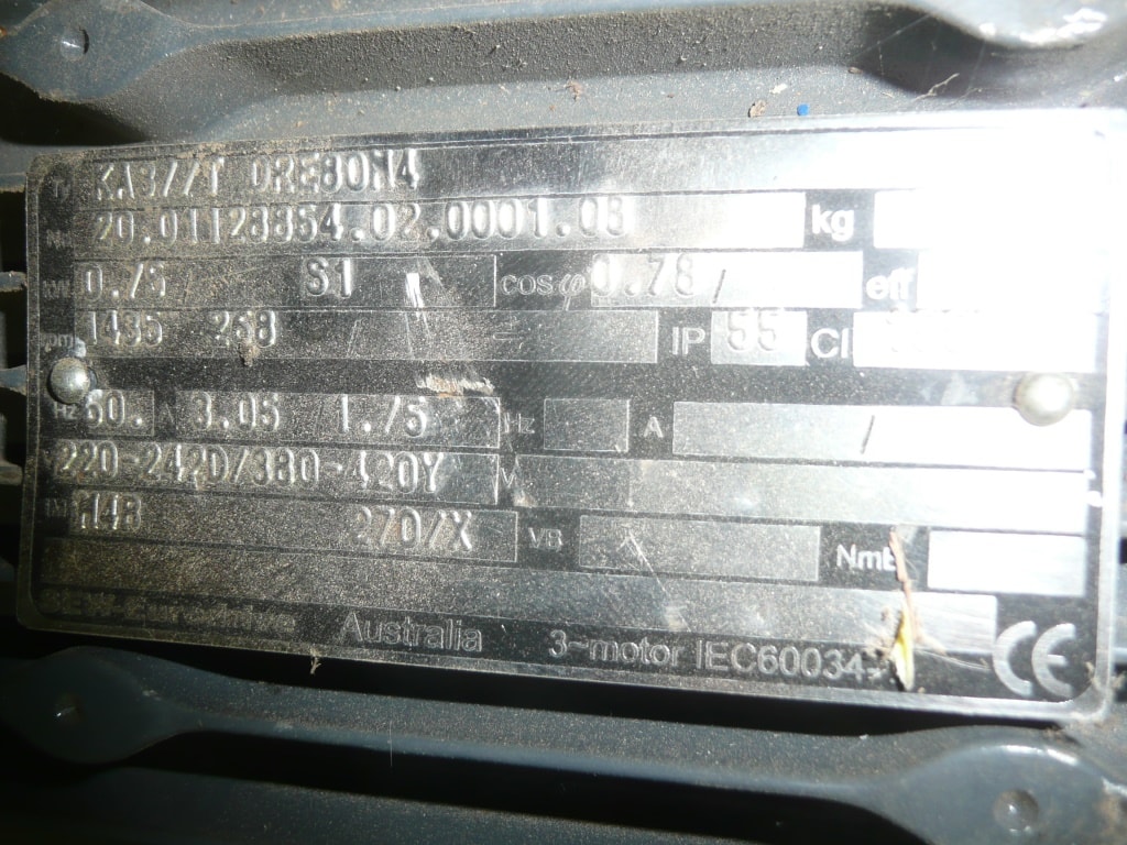 SEW Eurodrive single/three phase 0.75kw 4 pole electric motor and gearbox 5.35:1 ratio