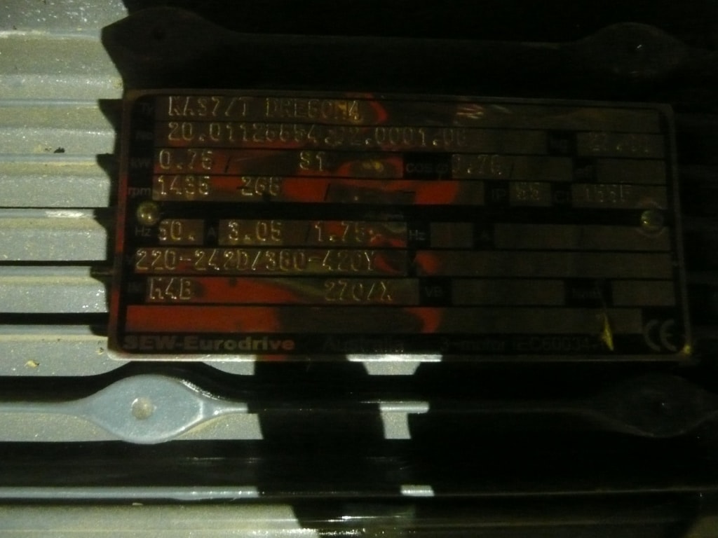 SEW Eurodrive 0.75kw 4 pole electric motor and gearbox 5.35:1