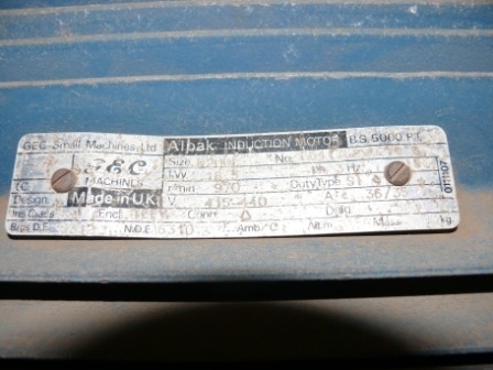 Code:57 Model/Make: GEC/Teco Frame: D200LC Volts: 415/440 RPM: 970 KW: 18.5 HP:25 Amps: 36/38 Foot Mounted Alpak with feet