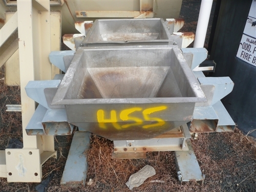 Weight: 80kg Manual discharge, chute fitted with steel skid for forklift Good Condition Manufactured by Unique Metals