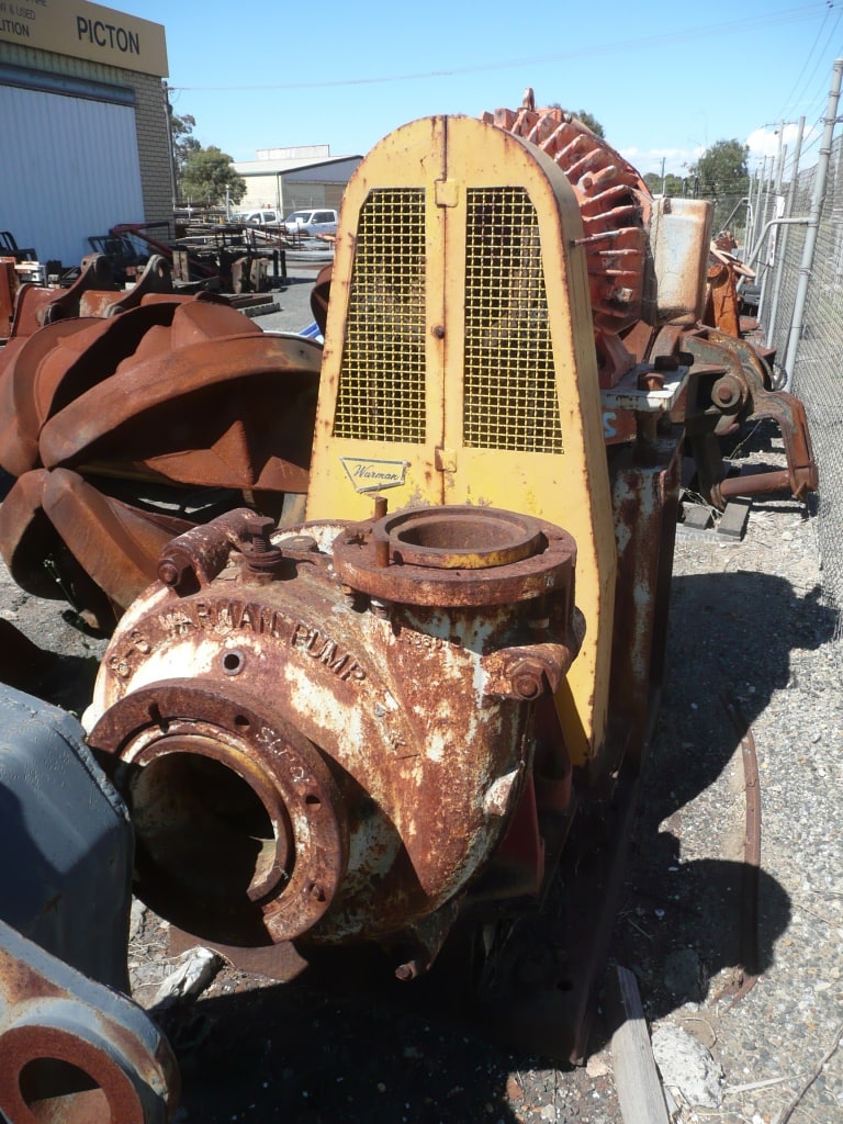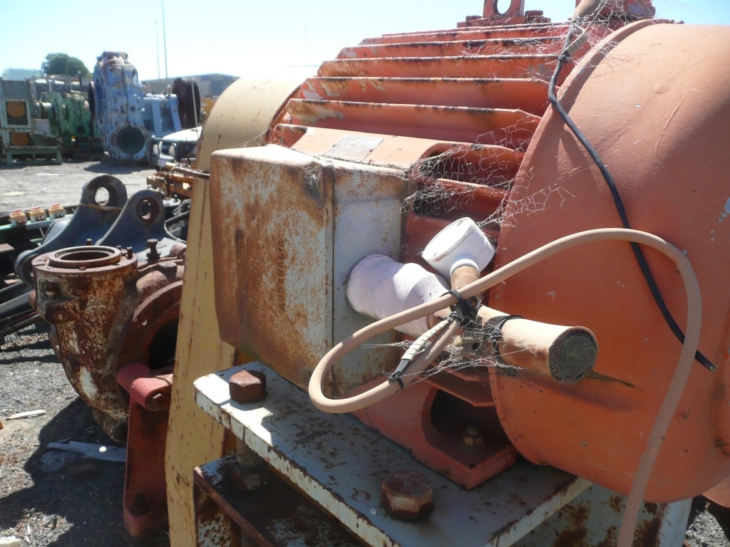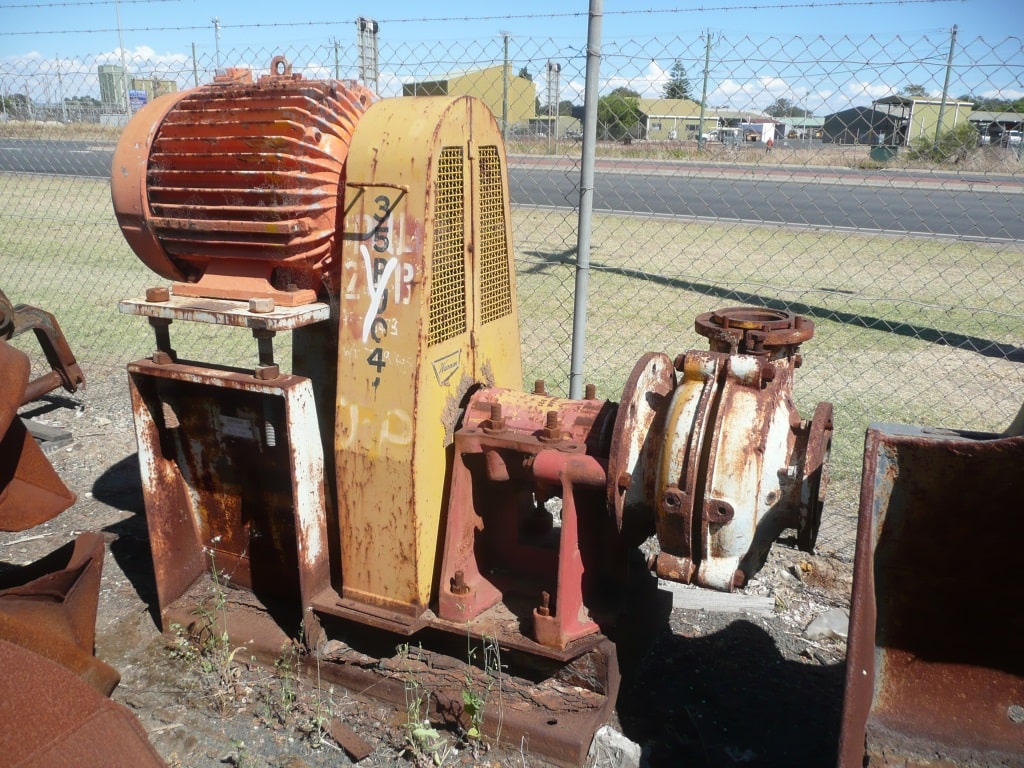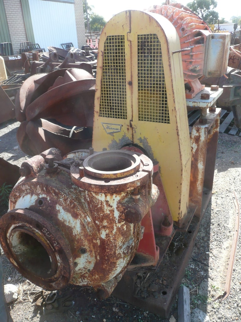 Warman 8/6 Centrifigal Slurry Pump steel lined with gland packed seal, bearing assembly and 3 Phase 90kw 4 Pole Electric Motor on steel skid. Ex-mineral sand